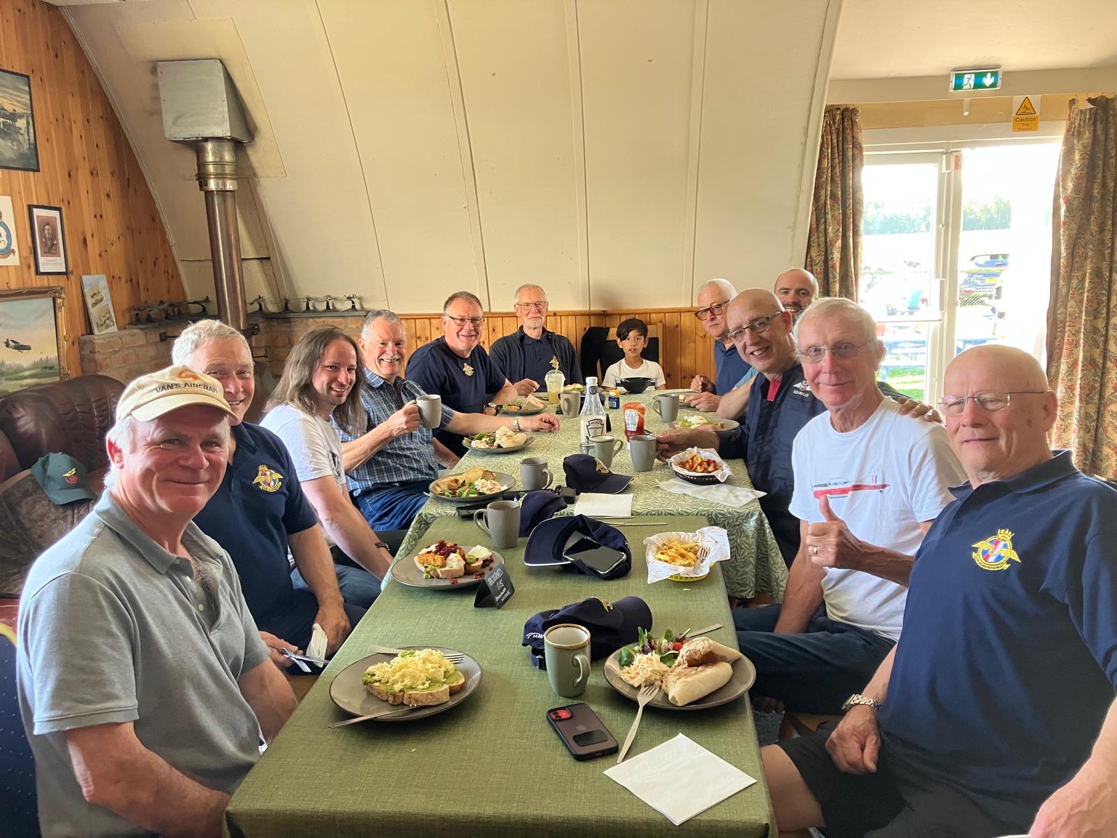 The stunning run of recent flying weather meant that even without the attendance of our SP and normal guarantor of fine conditions, we were able to get 10 aircraft to Shobdon for a very convivial lunch, characterised by the normal level of banter and abuse! This from one of our disreputable attendees.